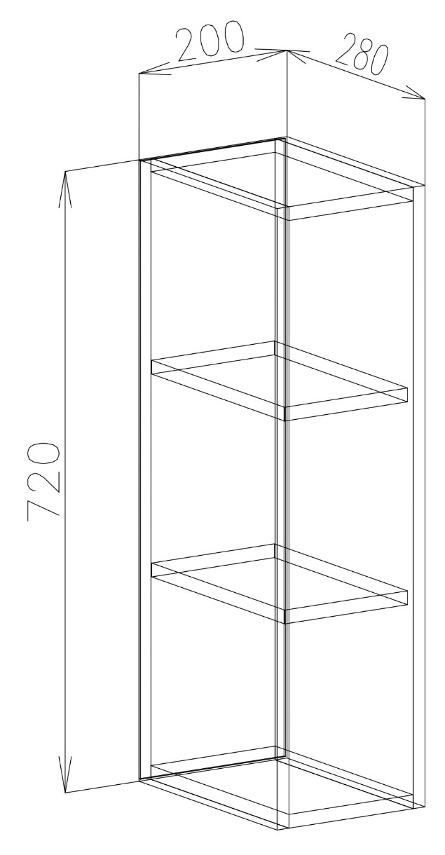 — Modul superior cu 2 rafturi, fără usă (VOS-20) (1 buc.): 200*720*280 mm