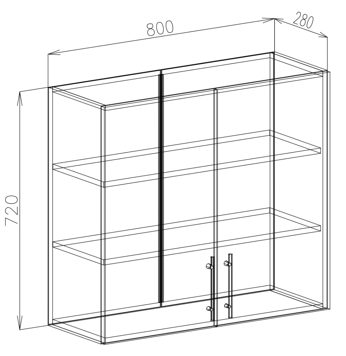 — Modul superior cu 2 rafturi, 2 uși (VS-80) (1 buc.): 800*720*280 mm