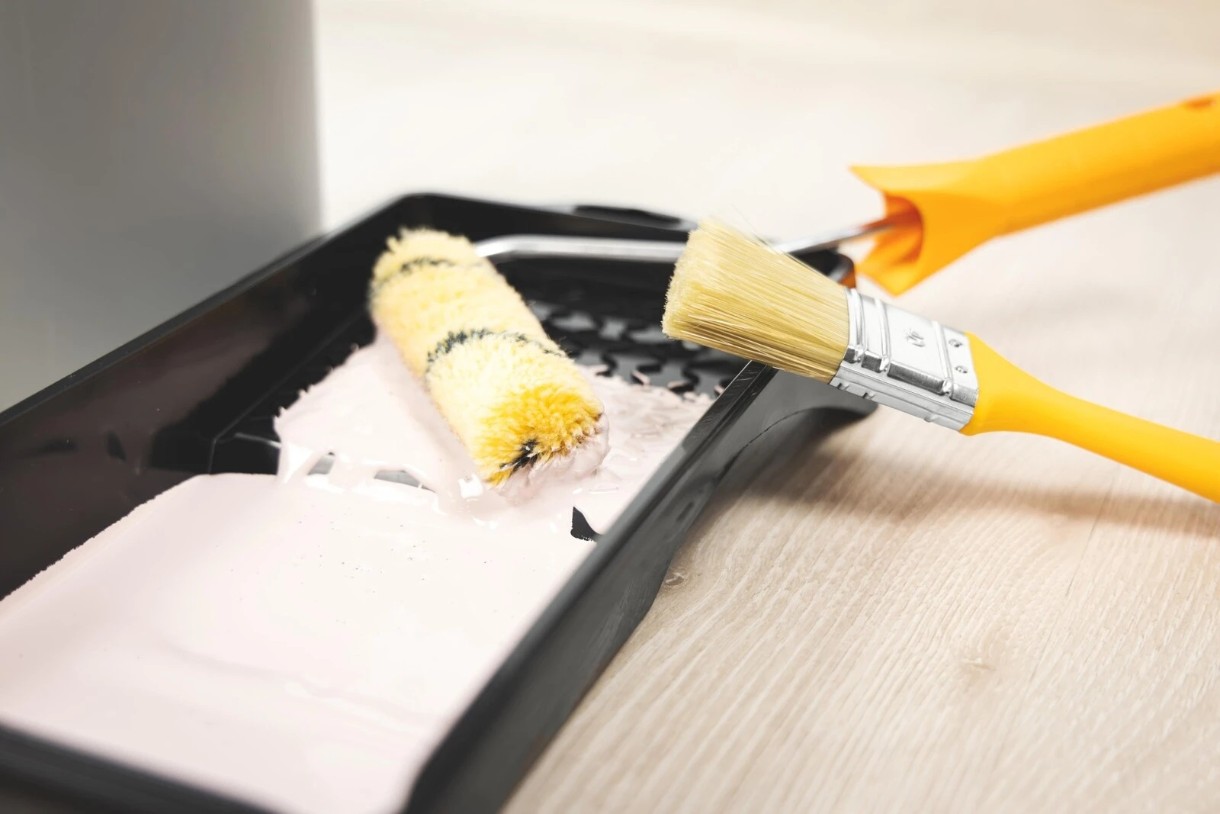 Echipamenttava cu dimensiunile 15x29 cm, pensulă cu lățimea de 40 mm, mâner, rolă