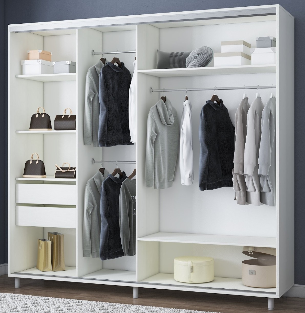 Dulap cu uşi glisante Mobildor-Lux Aron 230x220 White+Picture (aron1032)