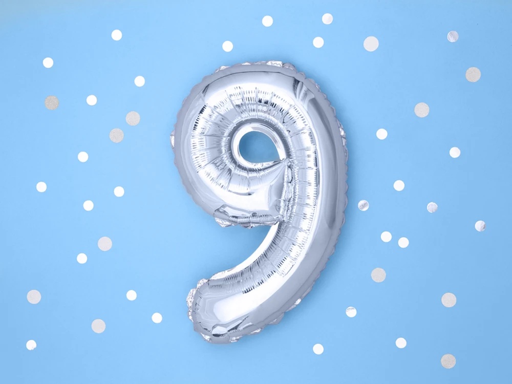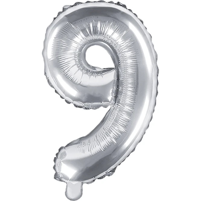 Balon PartyDeco Number 9 35cm Silver (FB10M-9-018)