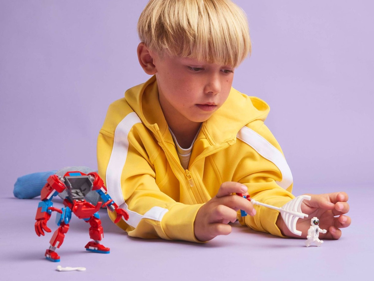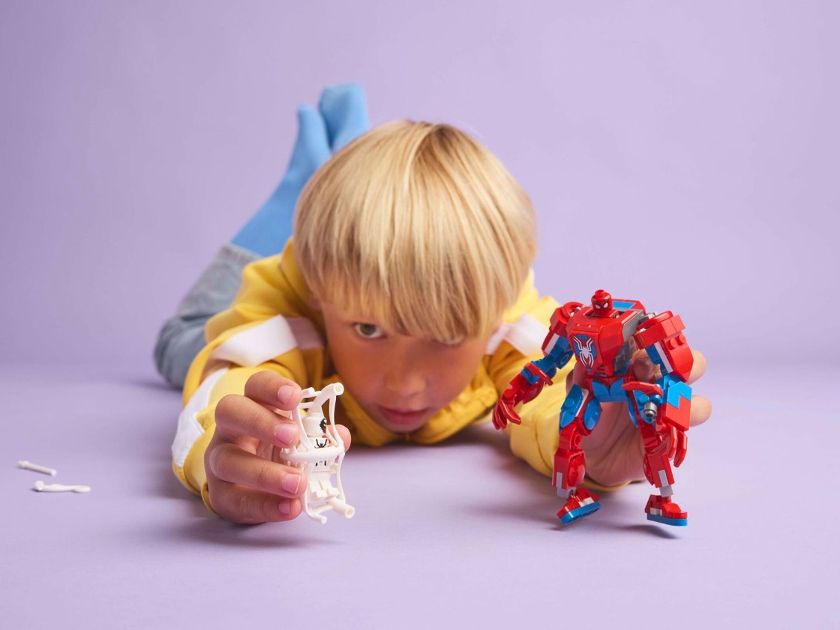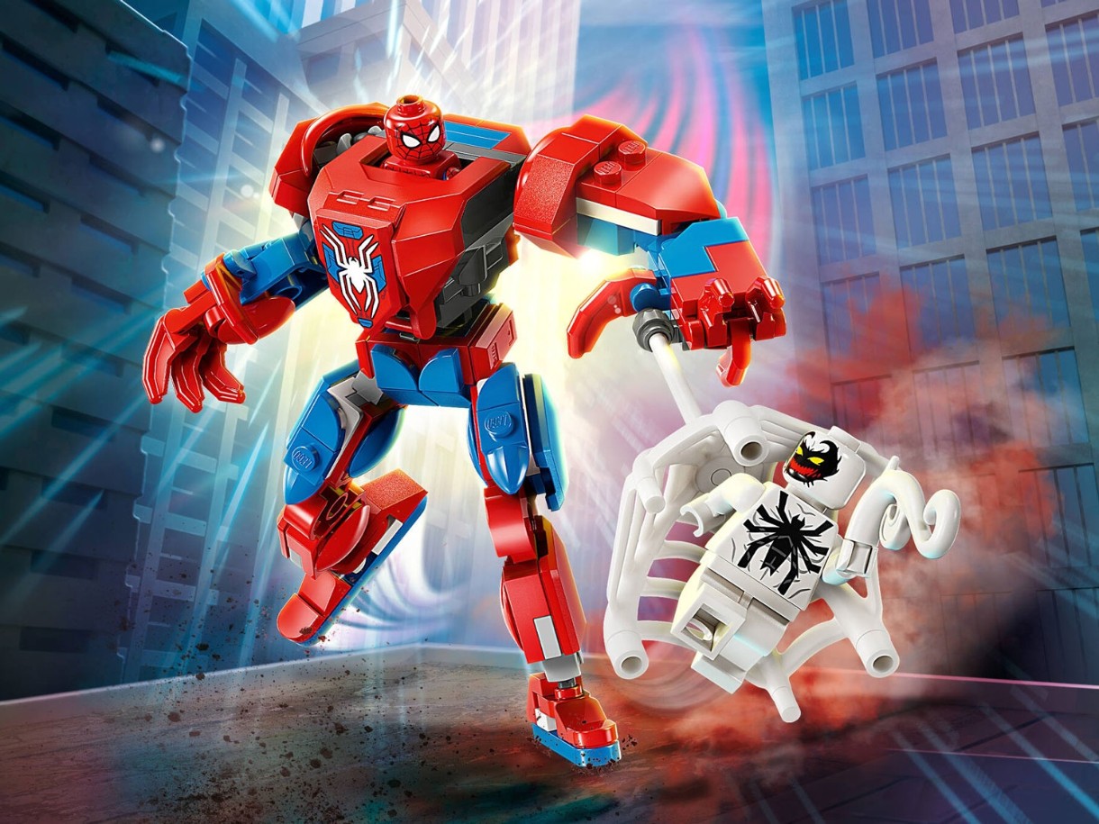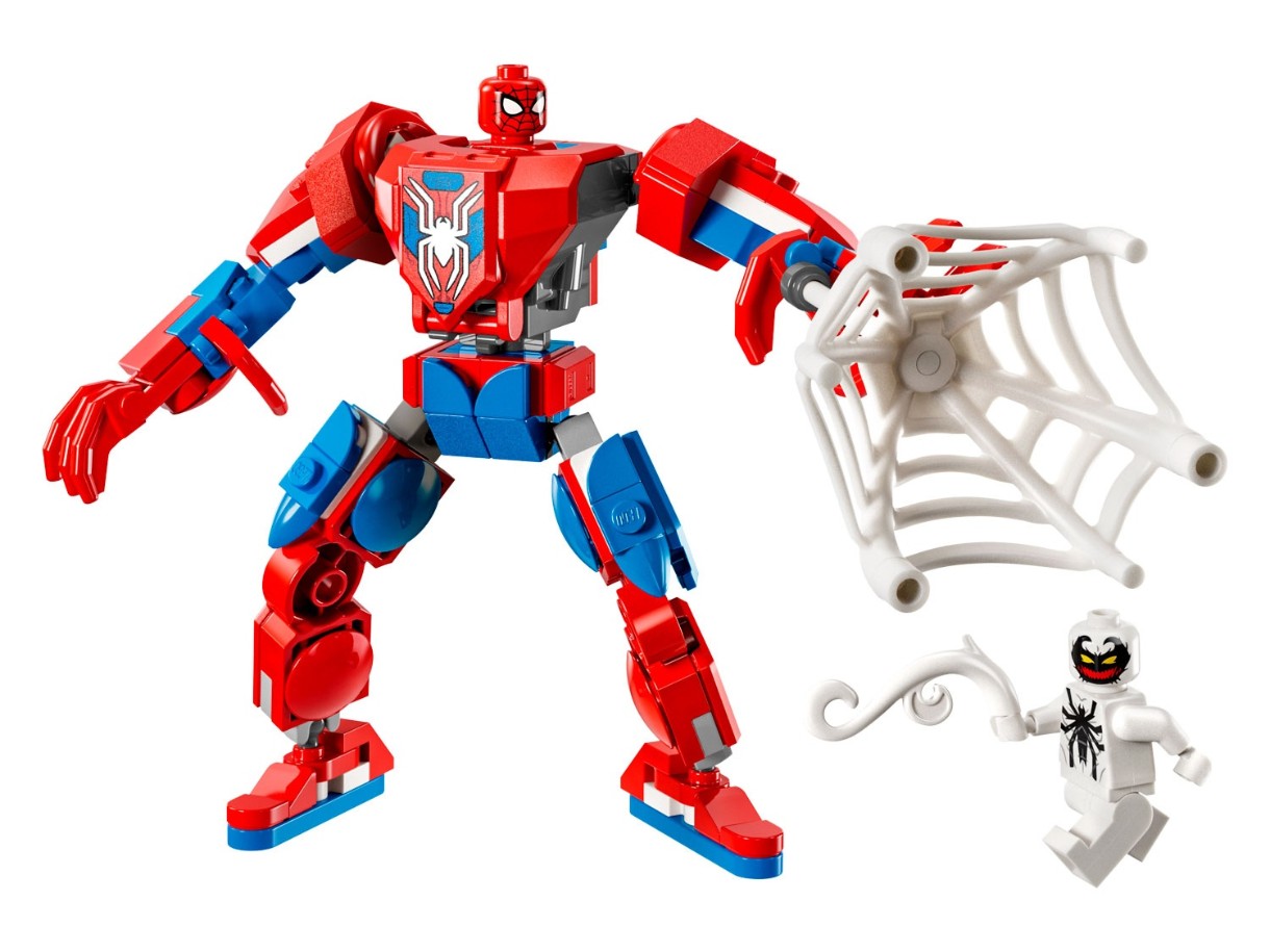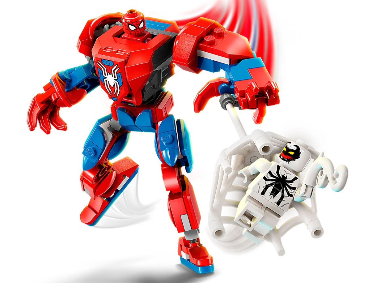Acest set de joacă LEGO Marvel include 2 minifigurine: Spider-Man și Anti-Venom cu tentaculele și brațele sale. Robotul construibil are brațe, picioare și degete articulate. Copiii deschid trunchiul robotului pentru a accesa o cabină de pilotaj care poate găzdui o minifigurină Spider-Man. Este inclusă o pânză mare și flexibilă care poate ține minifigurina Anti-Venom și se potrivește atât în mâinile minifigurinei, cât și în cele ale robotului. Pentru o distracție digitală sporită, constructorii pot mări imaginea, pot roti modelele în 3D și își pot urmări progresul folosind aplicația distractivă și intuitivă LEGO Builder.