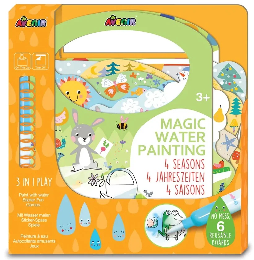In set6 foi de pictură cu apă multiple, 2 plăci pentru 2 jocuri, 110 autocolante reutilizabile, marker magic pentru pictură în apă