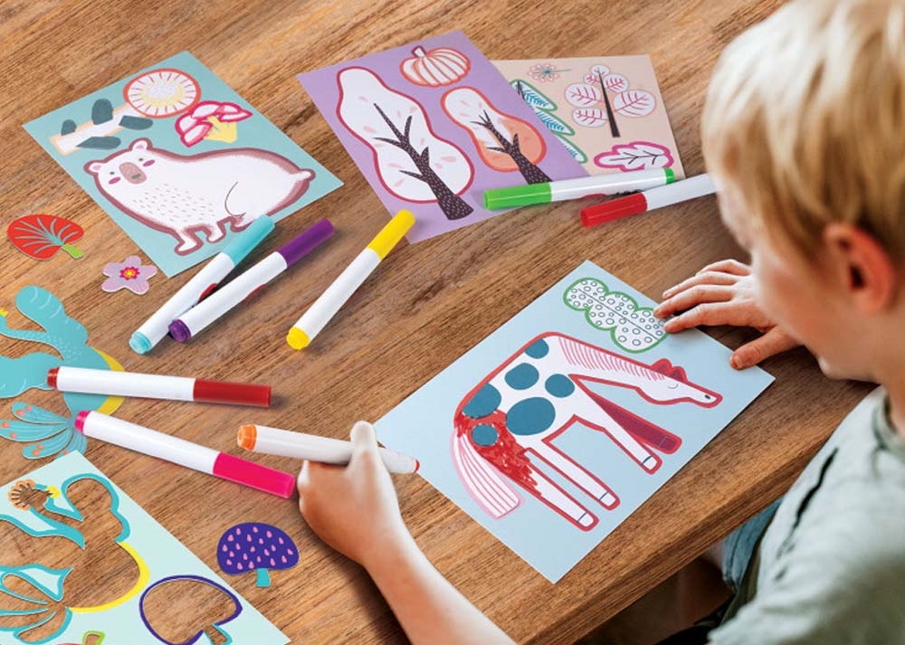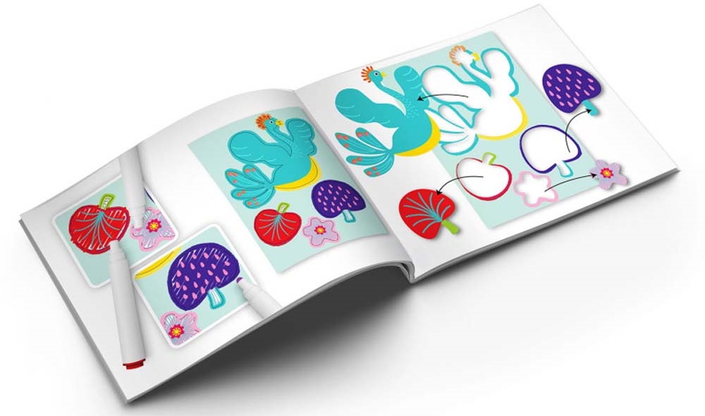 Contine 10 cartonase pretiparite si predecupate cu modele, 8 markere potrivite pentru copiii mici si un ghid detaliat de colorat cu instructiuni pas cu pas pentru a obtine rezultate frumoase.