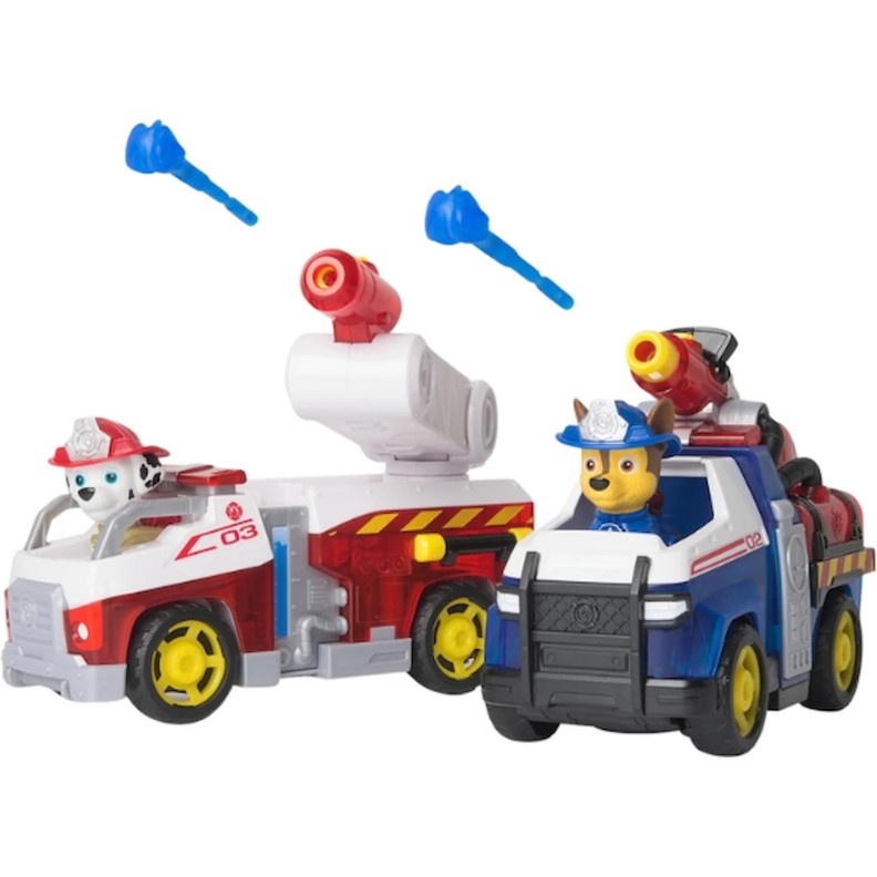 Eroi curajoși: Setul include Chase și Marshall, fiecare cu propriul vehicul de salvare. Capetele cățelușilor sunt articulabile, pentru jocuri imaginative.