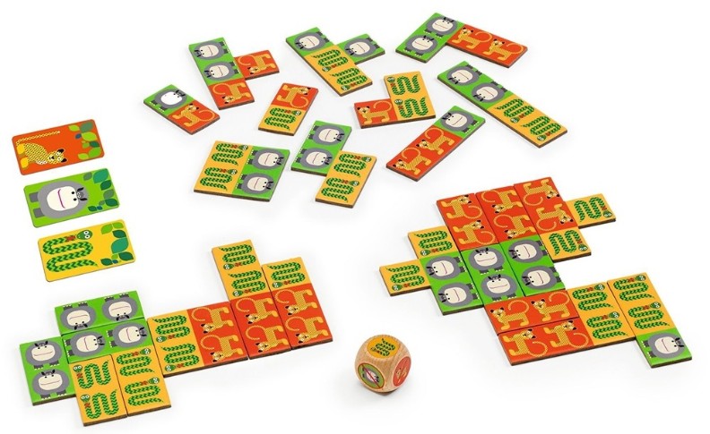 In set42 de poliomino, 21 de cărți de animale, 3 cărți bonus, 1 zar, reguli de joc