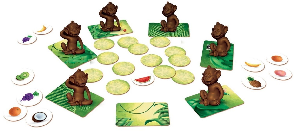 In setchipsuri de maimuță - 8 buc., jetoane liana - 9 buc., jetoane cu fructe - 24 buc., regulile jocului