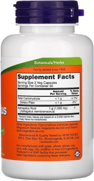 Vitamine NOW Astragalus 500mg 100cap