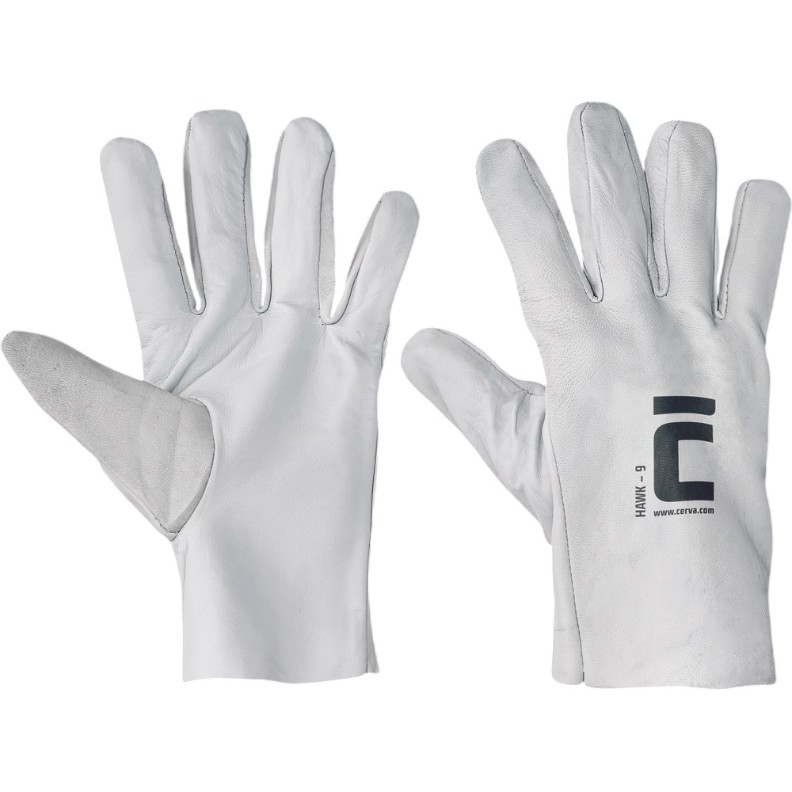 Mănușile HAWK de la Cerva sunt realizate din piele moale albă de capră și nu au manșetă. Aceste mănuși sunt destinate protecției mâinilor la efectuarea lucrărilor generale și cu risc redus, inclusiv în industria și service-ul auto, construcții și reparații, grădinărit, agricultură, silvicultură, piscicultură și vânătoare, industria prelucrării lemnului și a mobilei, industria ușoară, logistică, transport și telecomunicații.