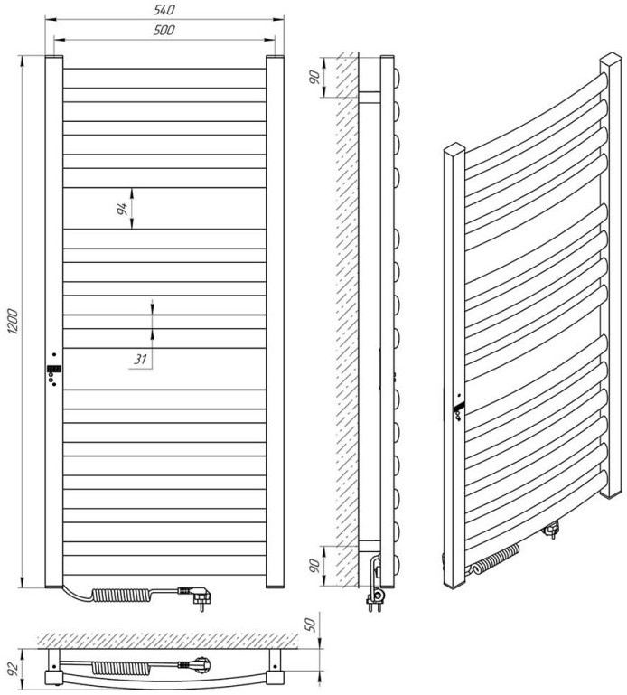 Uscător de prosoape Laris Atlant Premium CK14 500x1200 Elektric L