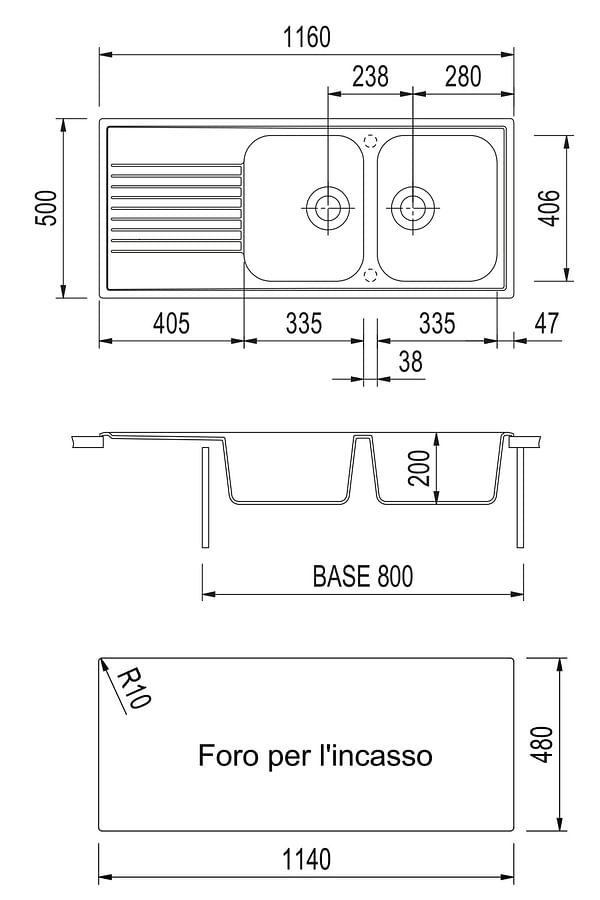 Dimensiuni cuvă335x406 mm