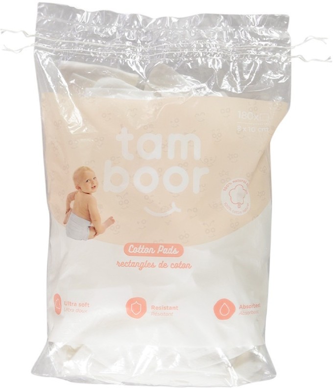 Rectangles de coton Tamboor (180 buc.) sunt discuri din 100% bumbac natural, extrem de moi și delicat concepute pentru pielea sensibilă a bebelușilor și nu numai. Aceste fibre moi și absorbante nu se destramă, nu lasă scame și nu se rup, fiind potrivite pentru igiena de zi cu zi-curățarea feței, corpului sau a zonei de schimb. Scutecele pot fi utilizate de întreaga familie și sunt hipoalergenice, adaptate pielii sensibile încă de la naștere. Fiecare pachet conține 180 de rectangle de bumbac de dimensiuni practice pentru uz frecvent.