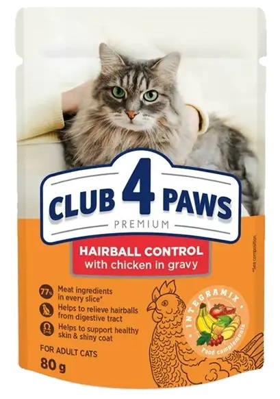 Hrană umedă pentru pisici Club 4 Paws Adult Cats Hairball Control Chicken 80g