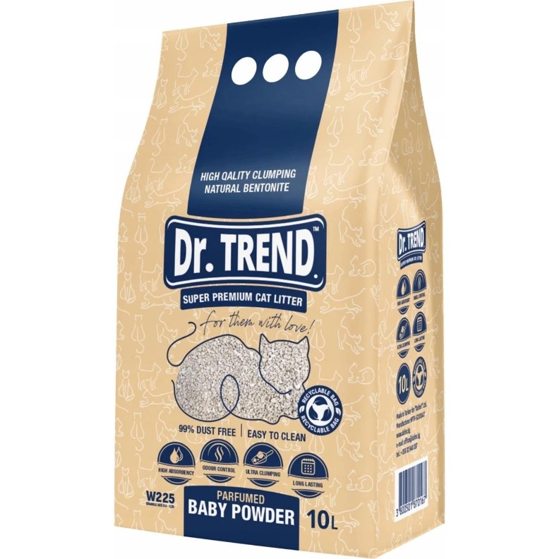 Asternut igienic pentru pisici Dr.Trend Natural Bentonite Parfumed Baby Powder 10L