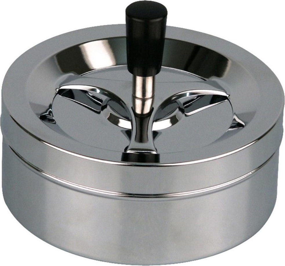 Scrumieră rotativă crom 14 cm — accesoriu elegant și practic pentru fumători, complet în crom lucios pentru un stil modern. Diametrul de 14 cm și mecanismul rotativ permit aruncarea ușoară a cenușii și curățarea simplă, fără împrăștiere. Construcție metalică solidă rezistentă la coroziune și zgârieturi, ideală pentru casă, birou sau cafenea. Compactă, stilată și durabilă — alegere excelentă pentru cei care apreciază curățenia și designul.