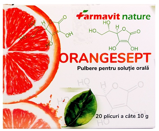 «ORANGESEPT» pulbere pentru soluție orală conține doză zilnică recomandată de vitamina C și extractul din sâmburi de grepfrut, care acționează ca imunostimulatori.