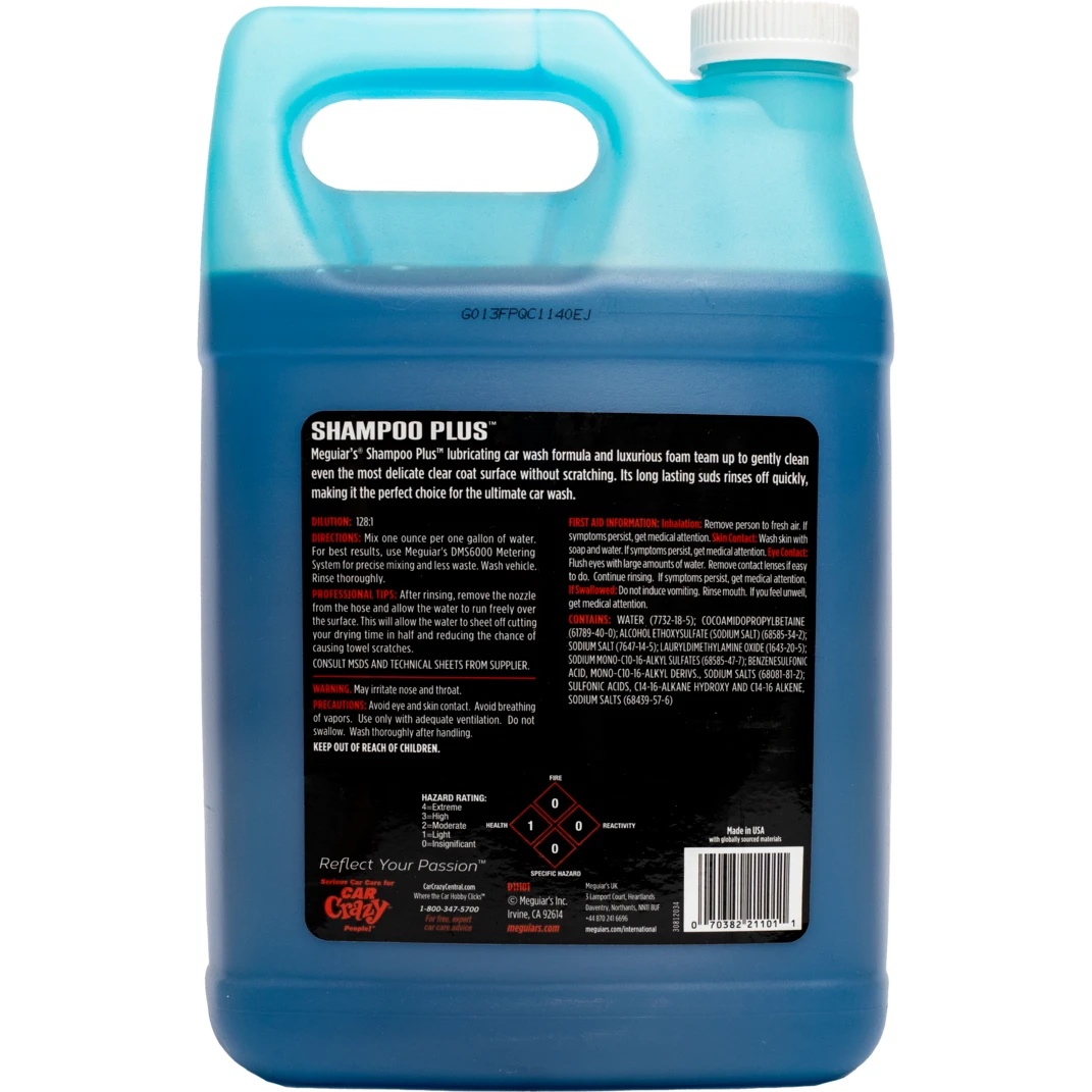 Efectul eficient de înmuiere, combinat cu spuma luxoasă a șamponului Shampoo Plus, fabricat de compania Meguiar's, creează condiții ideale pentru curățarea delicată și prelucrarea suprafețelor celor mai sensibile, fără a lăsa zgârieturi. Formula sa, îmbogățită cu polimeri, conferă strălucire și luciu vopselei și asigură păstrarea pe termen lung a suprafeței lustruite, ceea ce face ca acest șampon să fie alegerea ideală pentru spălarea finală.