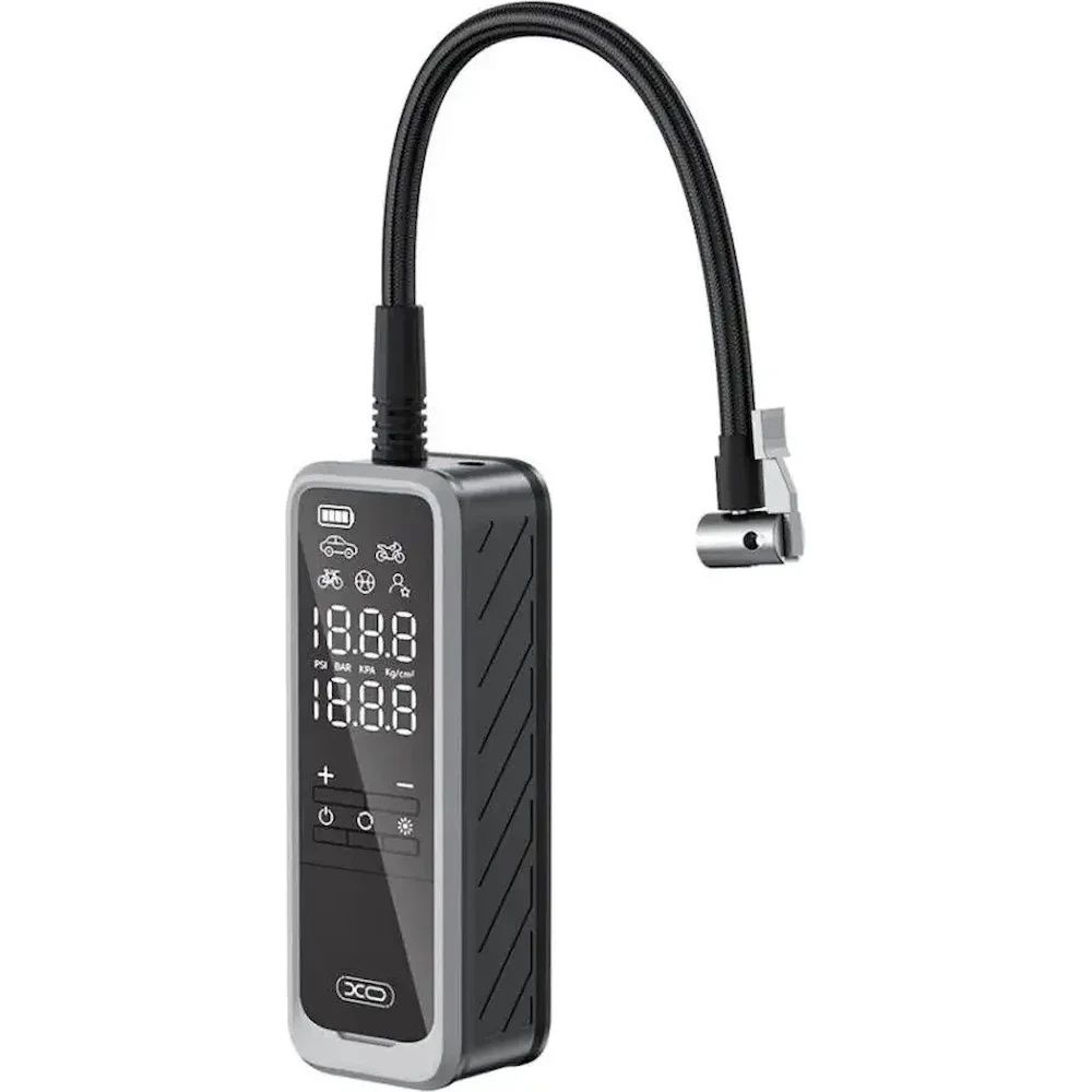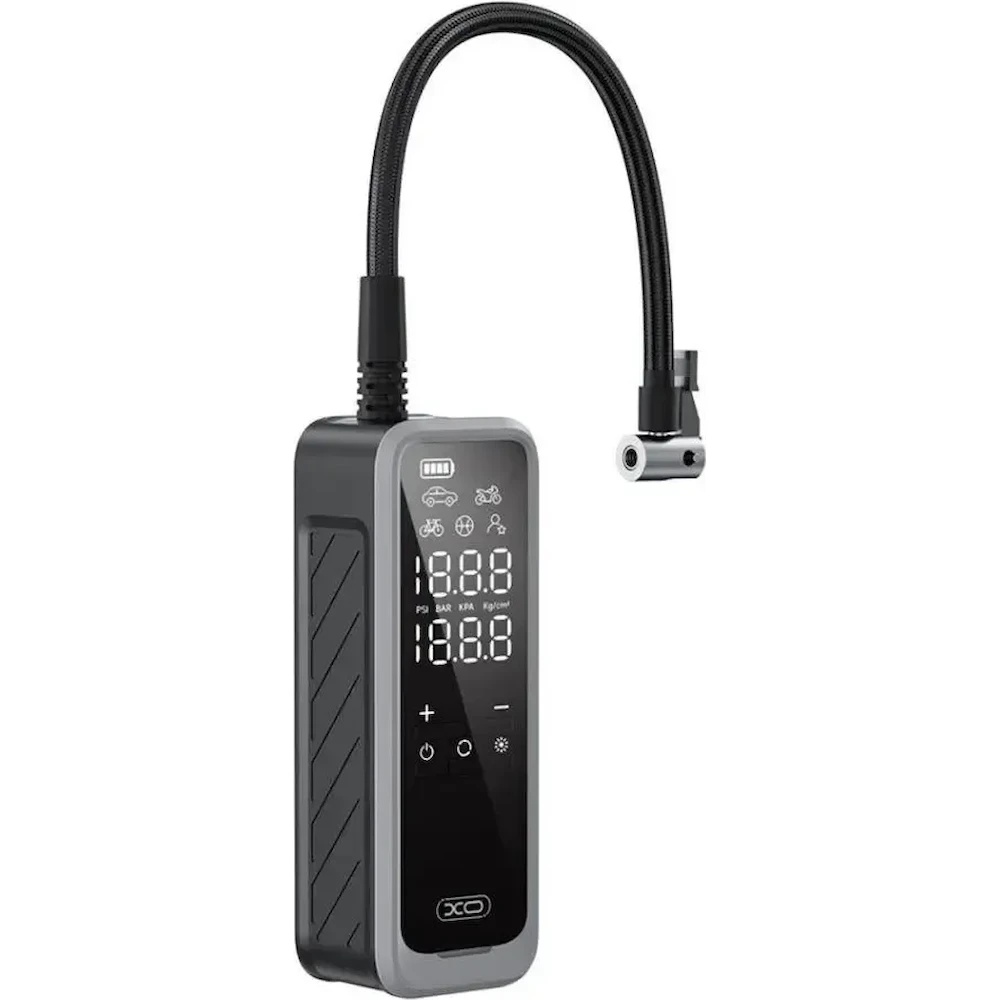 Compressor electric XO CZ018 Black cu control digital precis și moduri de funcționare inteligente. Modelul din 2025 permite umflarea cu ușurință a anvelopelor de automobile și biciclete, a mobilei, a echipamentului sportiv cu o viteză de 25 l/min. Funcționarea autonomă de la propria baterie cu o capacitate de 5 Ah asigură confort în călătorie. Cu o singură încărcare, gadgetul poate umple 2 roți de mașină, iar procesul de încărcare durează aproximativ 3,5 ore. În pachet este inclus un furtun flexibil de 30 cm cu un capăt universal pentru fixare și două adaptoare. Carcasa elegantă este echipată cu un manometru digital pentru controlul parametrilor.