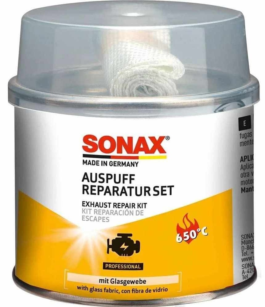 Kit de reparație pentru sistemul de evacuare, care include o pastă de etanșare pentru toba de eșapament și o bandă din fibră de sticlă (1 m x 6 cm). Etanșează rapid și eficient fisurile mari, crăpăturile, rupturile și orificiile. Suprafețele tratate devin complet etanșe la aer. Zona reparată rezistă la temperaturi de până la 650°C. Produsul nu conține azbest. Greutate: 200 g.