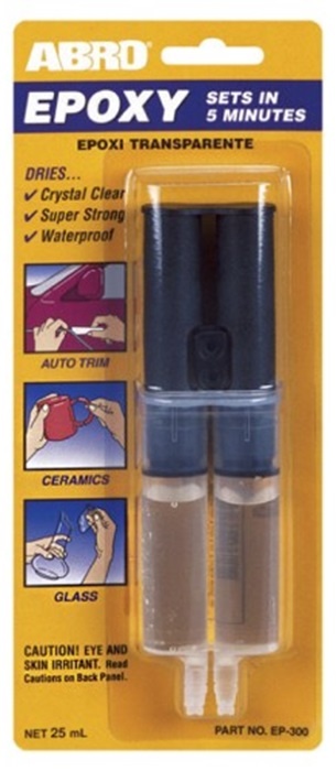Optically clear, vibration-resistant, and impact-resistant two-component epoxy in a syringe. Suitable for metal, acrylic, concrete, ceramics, porcelain, rubber, and most plastics. Resistant to water, oil, gasoline, and diluted acids and alkalis. Exhibits excellent electrical insulating properties. Designed for household and automotive use.