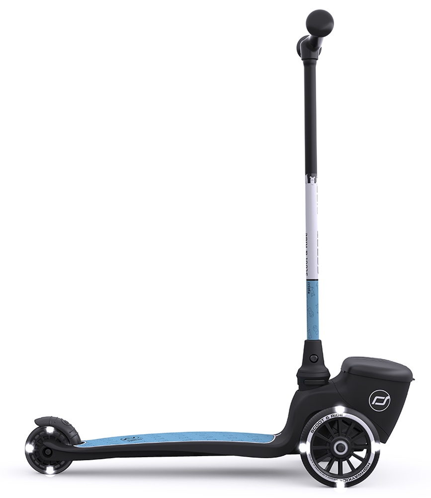 Trotineta pliabila cu roti luminoase, Highwaykick 2 Lifestyle de la producatorul austriac Scoot and Ride este un produs nou, uimitor care ii va incanta pe cei mici si va face plimbarile cu copiii mai confortabile si mai interesante! Trotineta HighwayKick 2 este partenerul ideal de plimbare pentru copiii cu varsta mai mare de 2 ani. Ghidonul pliabil faciliteaza transportul trotinetei. Confectionata din materiale durabile, de inalta calitate, trotineta Highwaykick 2 Lifestyle ofera stabilitate si siguranta in timpul utilizarii. Stabilitatea, siguranta si echilibrul sunt caracteristicile definitorii pentru Scoot Ride. Stabilitatea este asigurata de placa mai larga si mai lunga, in timp ce suportul patentat anti-rasturnare ofera siguranta, iar cele doua roti frontale asigura echilibrul maxim.