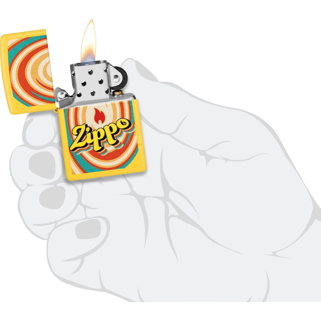 Înconjurată de o spirală hipnotică, bricheta Zippo Sunflower este decorată cu simbolul flăcării și logoul emblematic, realizate prin tehnica Color Image. Designul creează un efect vizual captivant. Bricheta este livrată într-o cutie cadou. Este un model original Zippo, rezistent la vânt, cu clicul metalic caracteristic. Construcția complet metalică, rezistentă la vânt, o face potrivită pentru utilizare în aproape orice condiții. Bricheta este reutilizabilă și poate fi reîncărcată pe tot parcursul duratei sale de viață. Pentru performanțe optime, se recomandă utilizarea combustibilului, pietrelor și fitilurilor originale Zippo. Fabricată în SUA, cu garanție pe viață.