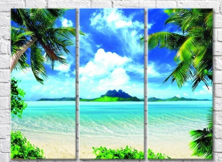 Pictură Rainbow Azure sea palm trees (3469161)