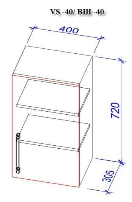 — Secție de sus(Bucatarie) VȘ-40 (1buc.): 40×30.5×72 cm