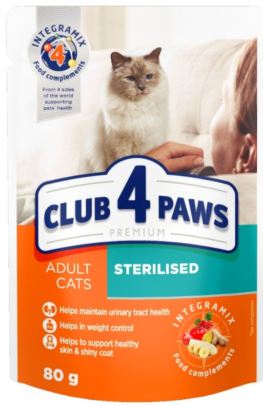 Hrană umedă pentru pisici Club 4 Paws Adult Cats Sterilised Chicken 80g
