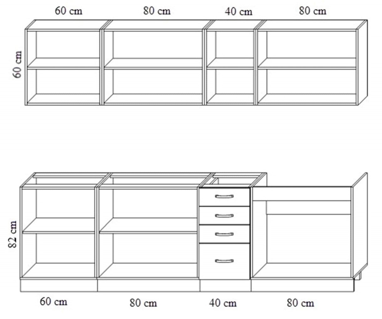 — Dulap inferior cu 4 sertare NSh(ya)-40(3) (1 buc.): 40×46,5/60×72 cm