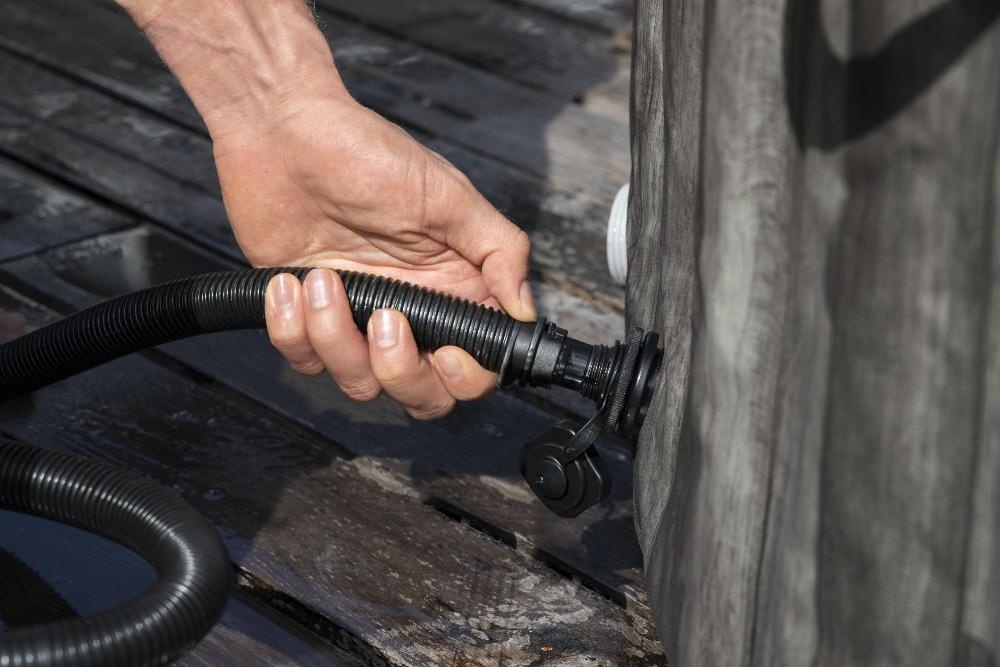 Nu sunt necesare instrumente pentru instalarea jacuzzi-ului, toate conexiunile sunt răsucite manual sau fixate ușor și la fel de ușor de îndepărtat dacă trebuie să puneți jacuzzi-ul pentru depozitare.