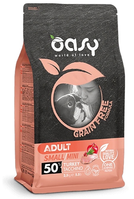 Hrană uscată pentru câini Oasy Adult GF Small/Mini Turkey 2.5kg