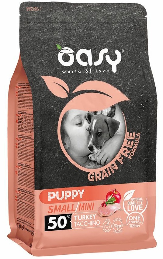 Hrană uscată pentru câini Oasy Puppy GF Small/Mini Turkey 2.5kg