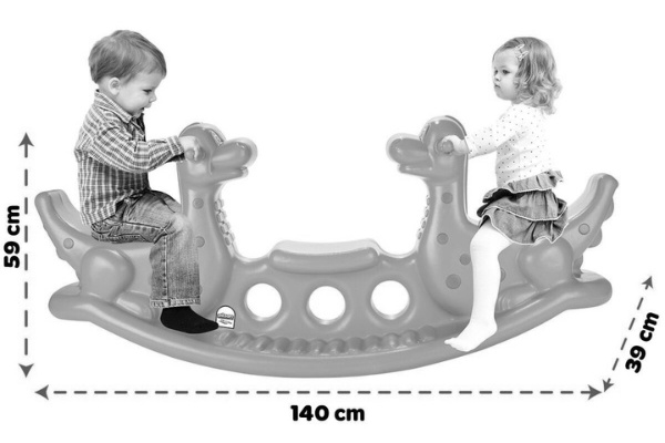 Leagănul dublu Pilsan Dino Seesaw (06-147) are un aspect elegant, o construcție robustă și un design ergonomic. Leagănul este rezistent la orice precipitații, nu se estompează, ușor de curățat. Este suficient să ștergeți leagănul în mod regulat cu o cârpă umedă pentru a îndepărta praful și murdăria, iar leagănul vă va servi mulți mulți ani.