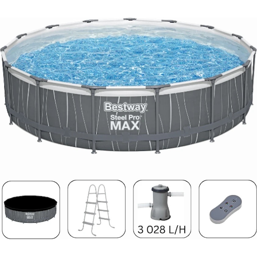 Piscina Bestway Steel Pro Max (561GDBW) este o piscină cu cadru rezistent și durabil, de formă rotundă, perfectă pentru amplasarea în grădină sau curte. Aceasta oferă confort optim pentru înot și relaxare activă pentru întreaga familie în zilele calde de vară.