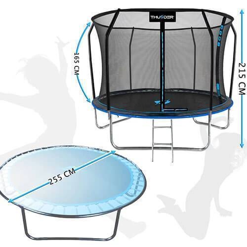 Trambulina ELITE, 255 cm, plasă interioară de la ⚡THUNDER®️⚡ este soluția perfectă pentru toți cei care doresc să petreacă timpul plăcut în aer liber și să aibă grijă de sănătatea lor. Indiferent de vârstă, trambulina va oferi o doză de bucurie și energie, și va permite, de asemenea, activitatea fizică, care este extrem de importantă pentru sănătate. Datorită faptului că oferă o mare distracție pentru întreaga familie, atat adulții cat și copii se vor putea bucura de momente grozave petrecute pe trambulină împreunăț