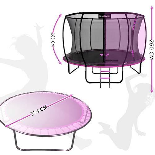 Trambulina Ultra, 374 cm, plasă interioară de la ⚡THUNDER®️⚡ este soluția perfectă pentru toți cei care doresc să petreacă timpul plăcut în aer liber și să aibă grijă de sănătatea lor. Indiferent de vârstă, trambulina va oferi o doză de bucurie și energie, și va permite, de asemenea, activitatea fizică, care este extrem de importantă pentru sănătate. Datorită faptului că oferă o mare distracție pentru întreaga familie, atat adulții cat și copii se vor putea bucura de momente grozave petrecute pe trambulină împreunăț
