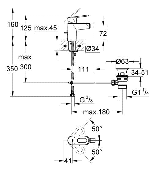 Baterie pentru bideu Grohe BauLoop (23338000)