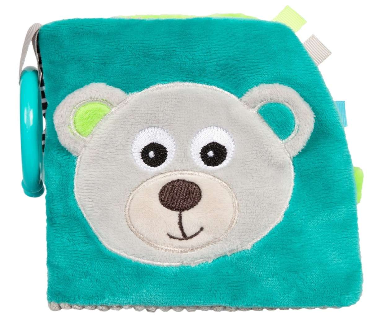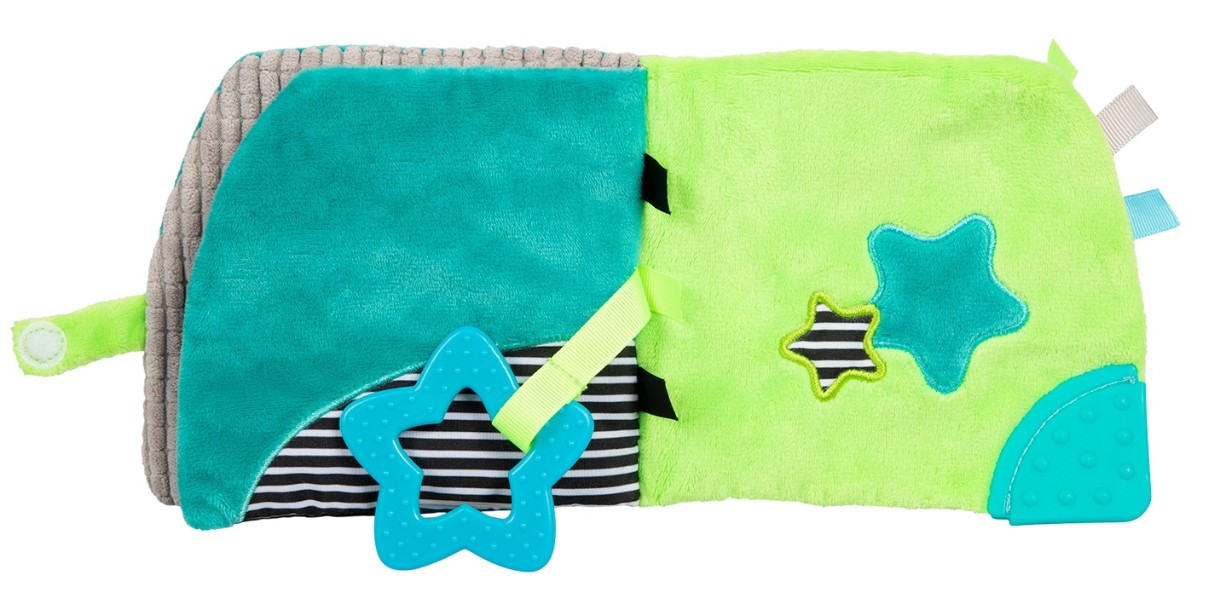 Există multe surprize în broșura educativă BEARS pentru a-l menține pe cel mic entuziasmat. Fabricat din materiale soft-touch cu o varietate de texturi. Cartea conține elemente de fixare, scârțâit, zornăit și foșnet, precum și o oglindă sigură care va stârni curiozitatea copilului. Cartea stimulează perfect dezvoltarea coordonării vizual-auditive și motorii la un copil. Cârligul practic vă permite să atașați jucăria la un cărucior sau pătuț.