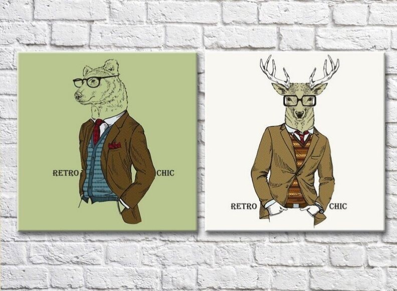 Pictură ArtPoster Bear and deer in a jacket (3447719)