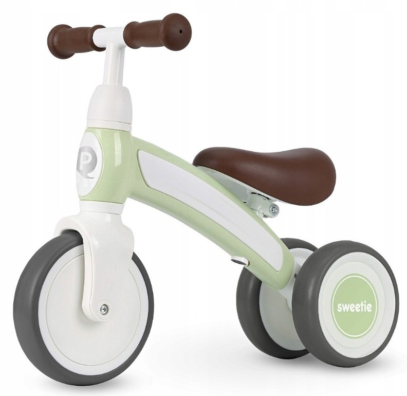 Sweetie are 3 roți duble din spate pentru o stabilitate excepțională, anvelopele din spumă EVA sunt silențioase și permit vehiculului să fie folosit atât în interior, cât și în exterior. Ghidonul și șa reglabile vă permit să reglați mașina la înălțimea copilului. Forma raționalizată reduce rezistența aerului, rezultând viteze de deplasare mai mari. Conform regulilor fizicii, cu cât un vehicul/bicicletă se mișcă mai repede, cu atât îi este mai ușor să se mențină în poziție verticală. Șaua căptușită și profilată și mânerele anti-alunecare oferă confort și ușurință în utilizare.