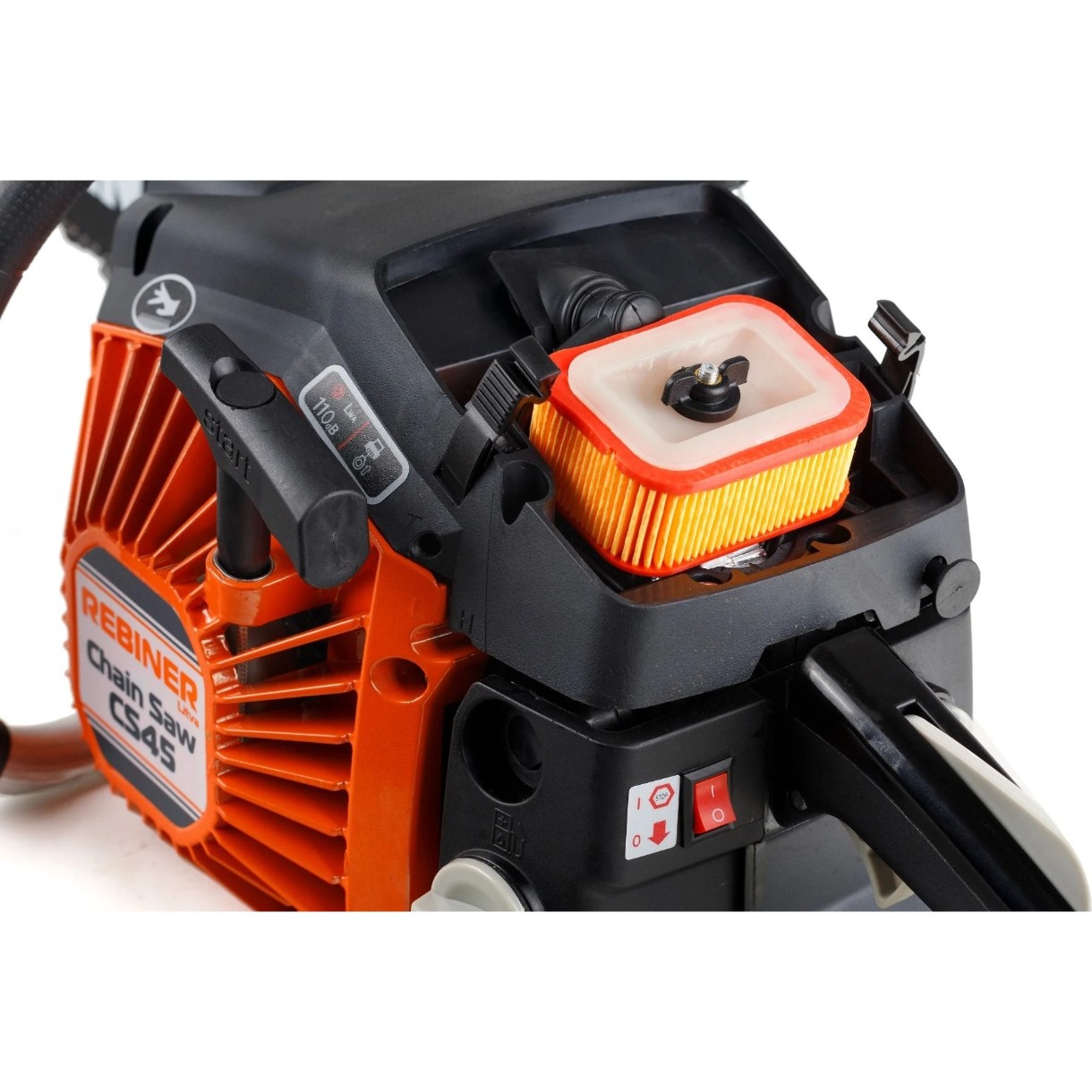 Пânză de feronerie Rebiner CS45 se distinge prin consumul redus de combustibil, vibrațiile și cantitatea de emisii nocive. Instrumentul este utilizat pentru tăierea copacilor, tăierea buștenilor și plăcilor, putând fi folosit în lucrările de construcție. Rezervorul de ulei este amplasat în partea din față a carterului. Lubrifierea forțată a lanțului și a șinei este aplicată pentru a reduce frecarea între ele, ceea ce crește durata de viață a echipamentului de tăiere.