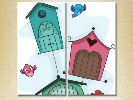 Pictură ArtPoster Birdhouses and birds (2225849)
