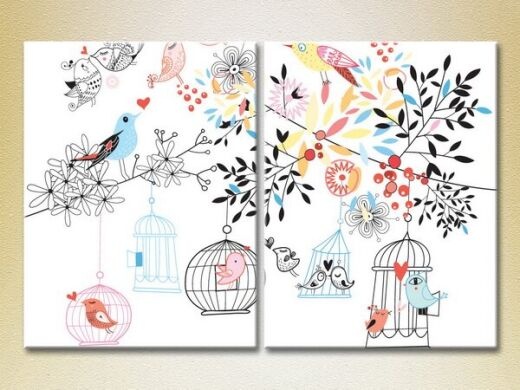 Pictură ArtPoster Birds/cages and trees 01 (2225837)