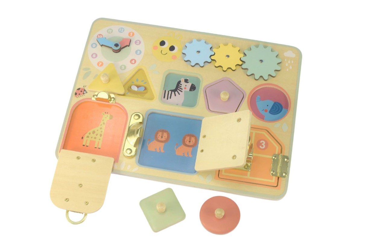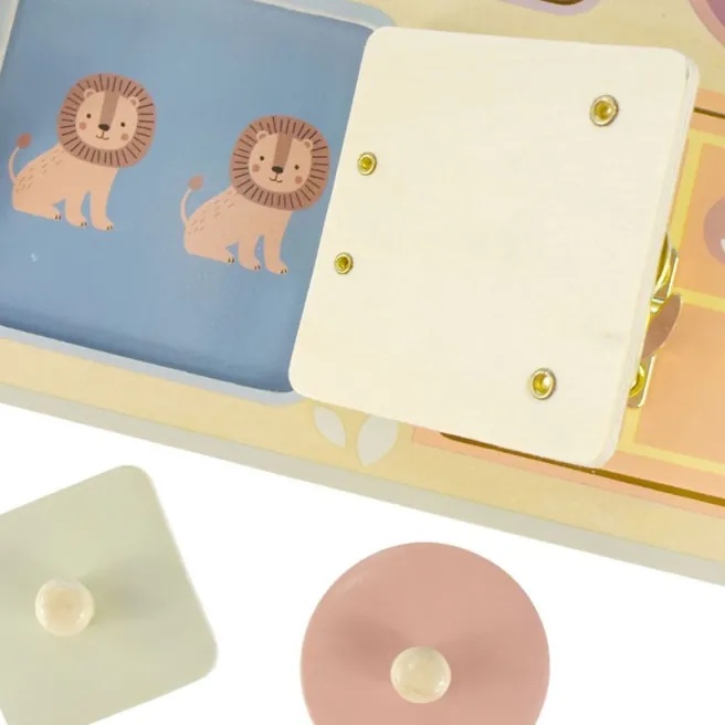 Această masă oferă o mulțime de activități distractive: copiii se pot juca, învârti angrenajele, manevra animalele în labirint și sorta blocurile. Jocurile dezvoltă abilitățile motorii fine, coordonarea mână-ochi și abilitățile de rezolvare a problemelor.