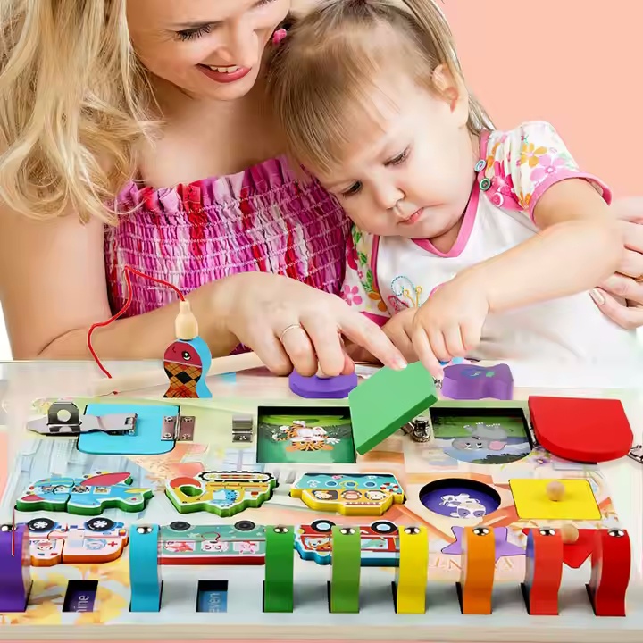 Busy Boards reprezintă niște panouri interactive handmade, care îi vor ține pe cei mici ocupați o vreme bună! Acestea conțin accesorii precum zăvoare, cheițe, xilofon, lumini, ușițe, forme geometrice cu magneței, spinner fidget și multe altele!