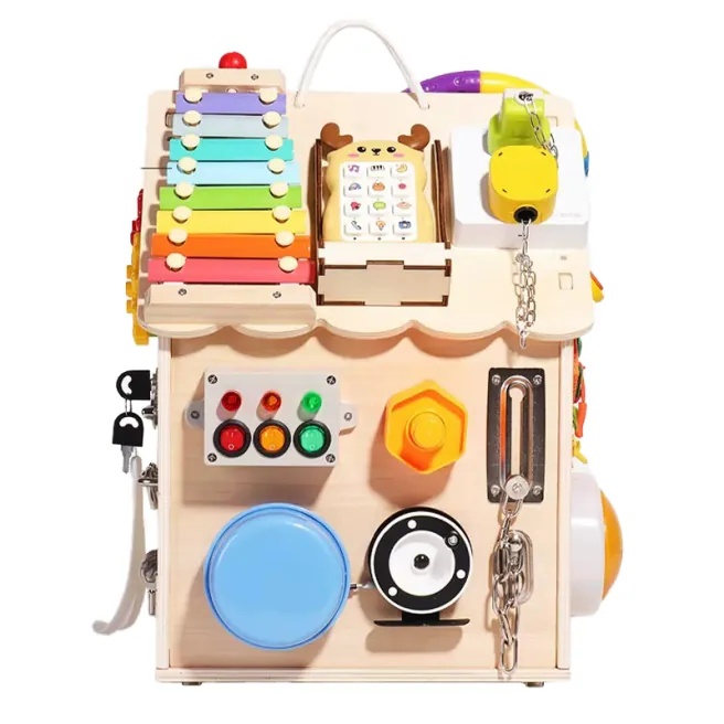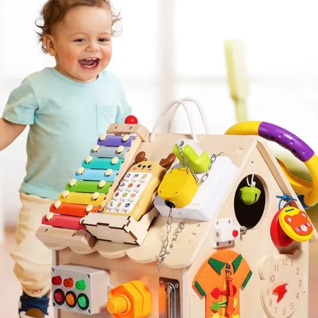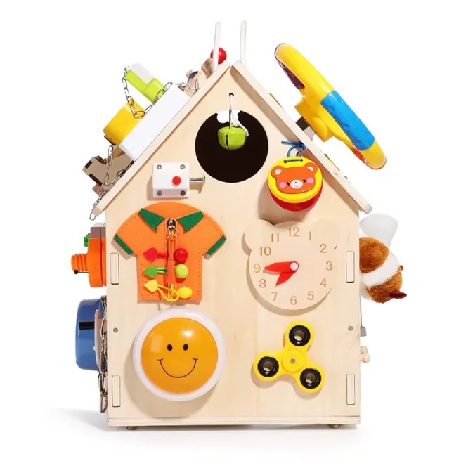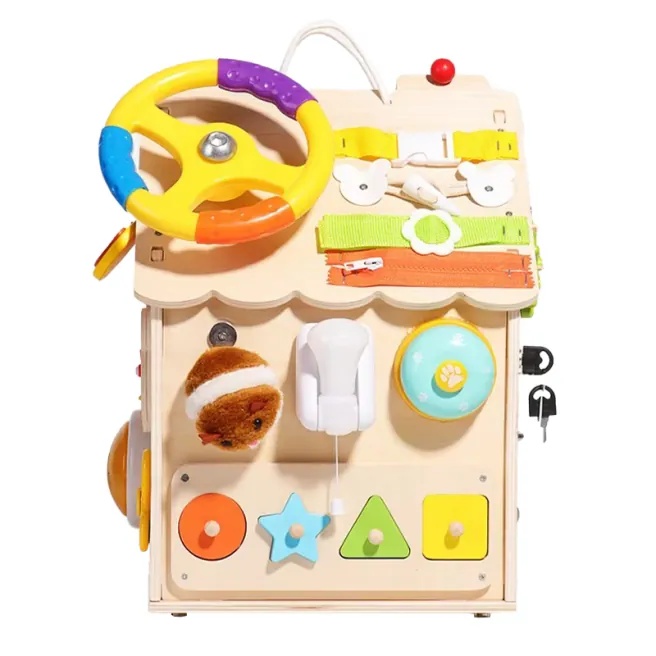 Casa cu volan este o jucărie educativă fascinantă pentru copii! Acest bisiboard de masă sensibil la atingere, cu butoane și efecte luminoase, vă va ajuta copilul să-și dezvolte abilitățile motorii, coordonarea mâinilor și ochilor și abilitățile de direcție. Jucăria promovează diferențierea culorilor și pregătirea pentru învățarea preșcolară.