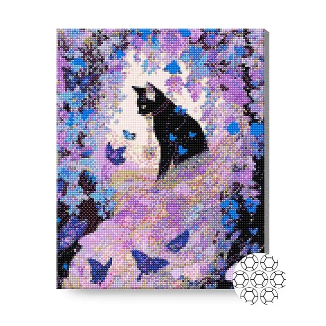Pictura cu diamante după numere Art Gallery Premium Black cat and butterflies 40x50cm (GA87139)