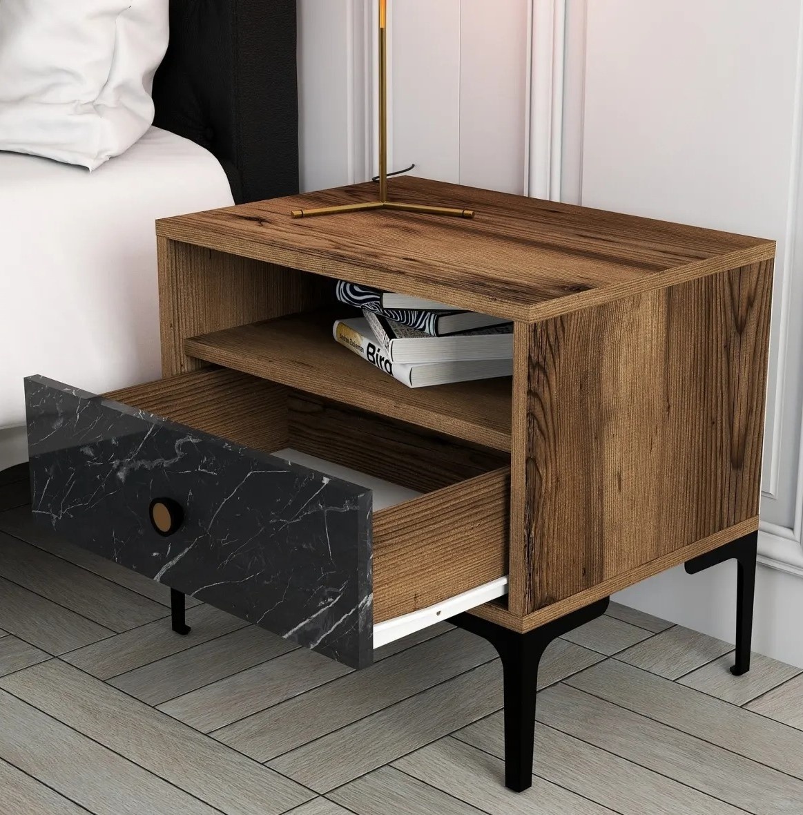 Noptieră Trendy Lizbon 534 Walnut/Black Marble/Black 50.8x56x40cm GTR001521