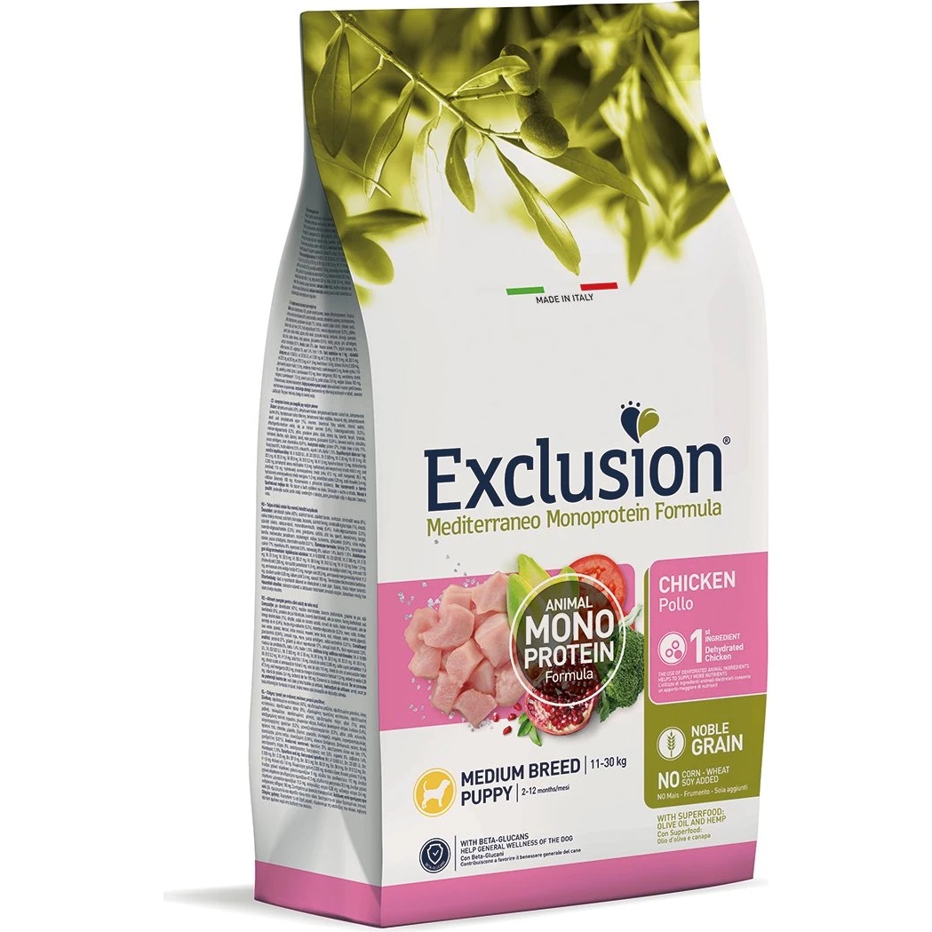 Hrană uscată pentru câini Exclusion Noble Grain Medium Breed Puppy Chicken 12kg
